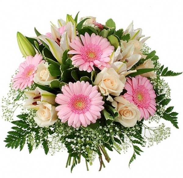 Когда в одном букете смешиваются герберы, лилии и розы – приятный, запоминающийся запах гарантирован. Нежные цвета придают букету стиль и изысканность, а украшение папоротником вносит дополнительный штрих в общую картину. Букет означает искренность, светлость и улыбку, подходит для друзей или коллег, чтобы извиниться или просто порадовать.