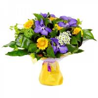 Вычурный ансамбль из контрастных и ярких цветов. Насыщенный, яркий желтый и нежный розовый оттенок делают букет похожим на праздничный торт. Единственного взгляда на него хватает, чтобы удостовериться в том, сколько позитива и тепла несет этот цветочный ансамбль. Данный букет станет отличным украшением важного события, а также принесет частичку света и тепла в обычный будничный день.