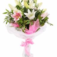 Букет из лилий, дополненный зеленью позволяет без слов выразить свою любовь, признательность, восхищение. При этом, такой подарок будет актуален к любому событию: юбилею, 8-Марта, дню рождения, помолвке и т.д. Такие восхитительные цветы способны принести в дом лишь радость, счастье, успех, ощущение праздника.